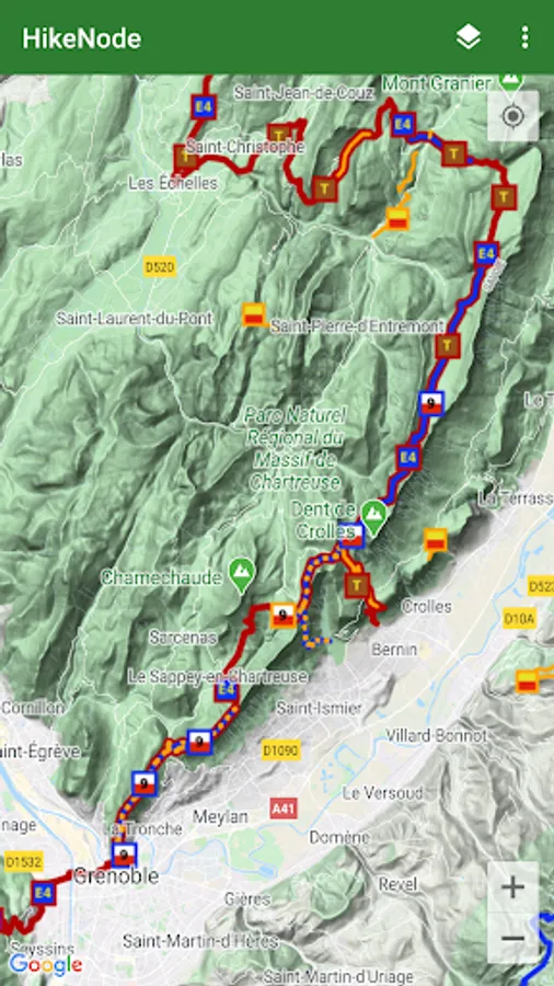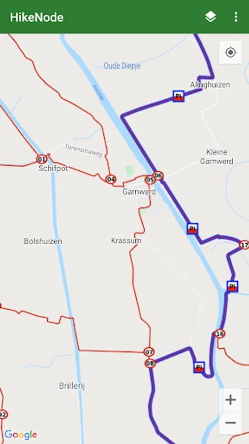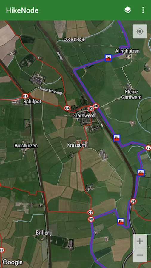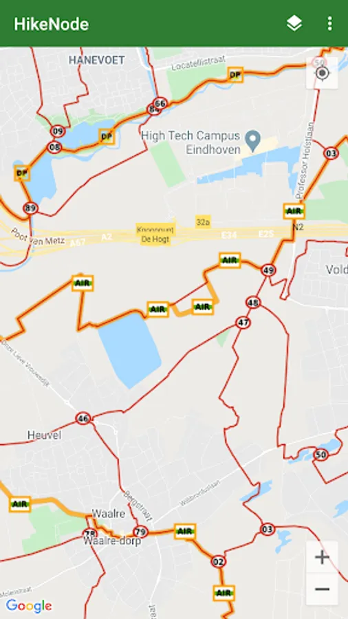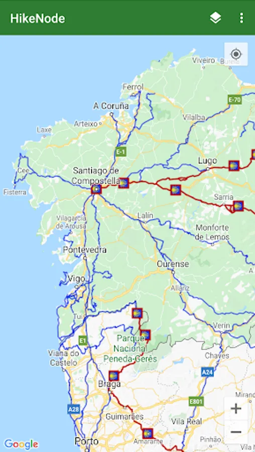 HikeNode shows hiking routes worldwide on the map. Long distance trails like the European long-distance paths (E-paths) across Europe, the Camino de Santiago (Way of St. James) in Spain and the Pieterpad in the Netherlands are shown, as well as routes between hike nodes and local trails.