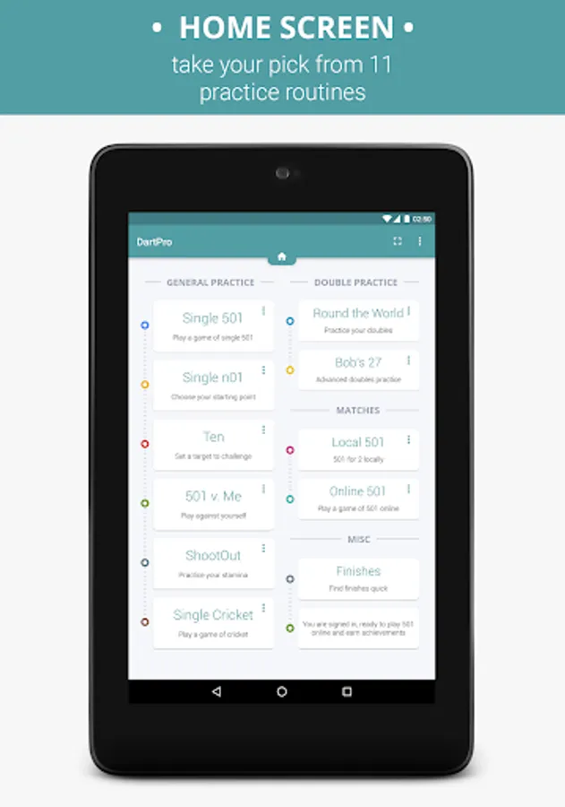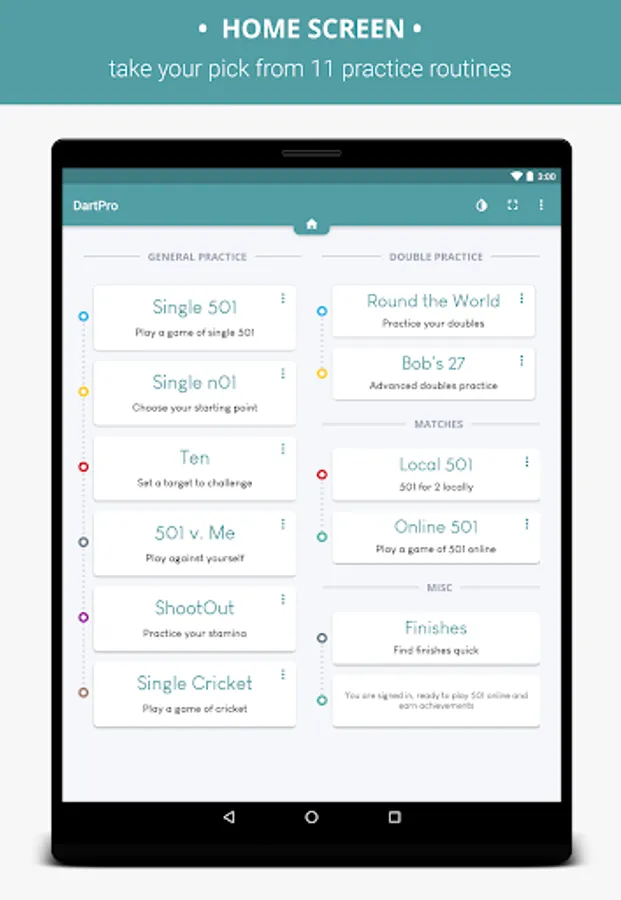 DartPro comes packed with 10 tried-and-true games to help you master every key aspect of the game.