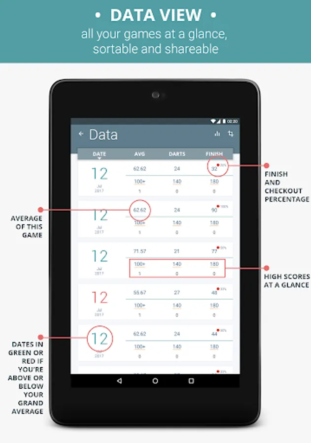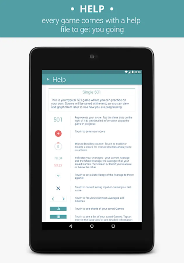 Every leg you play is saved and the grand average of all these games is visible at all times during gameplay, pressuring you to do better than yesterday or last month.