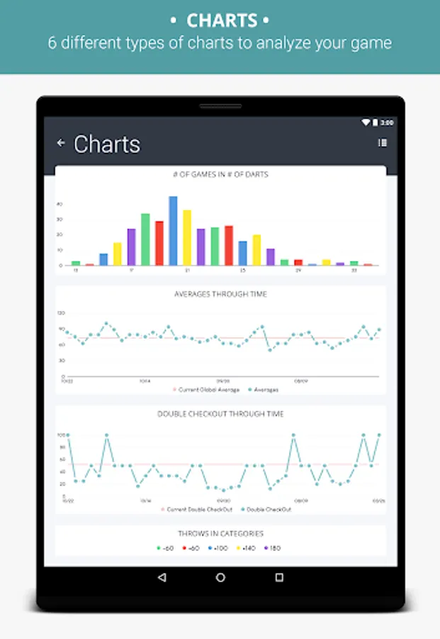 Charts and statistics keep you informed how you're doing over time and will show you which aspect of your game needs attention.