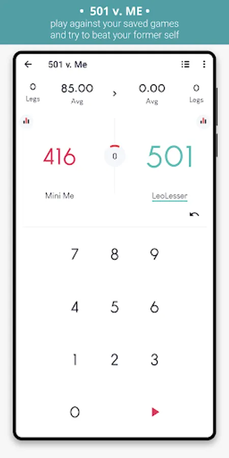 If you're tired of playing by yourself, there's local 501 to play against friends, Ten to play against different computer levels or 501 v. Me to play against your own saved games.