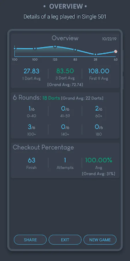 Single 501 - with finish suggestions, graphs, statistics and achievements