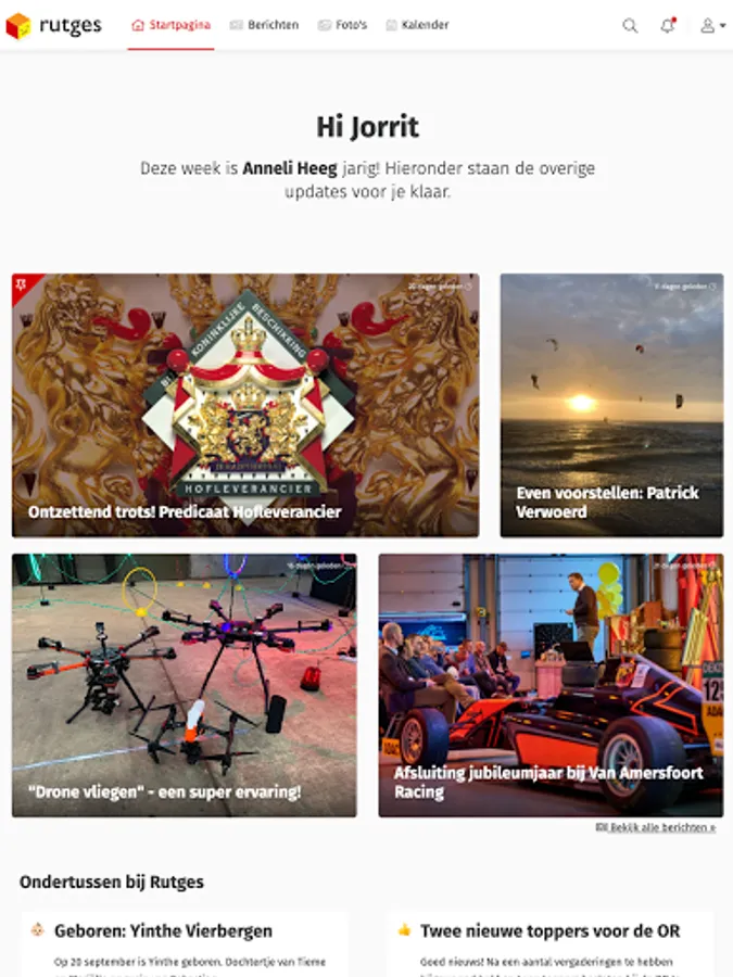 The app for the employees of Rutges Vernieuwt. Via this app you have 24/7 access to the latest news from the organization. You will find messages about projects, photos of events, information about new colleagues and much more. All especially for you!
