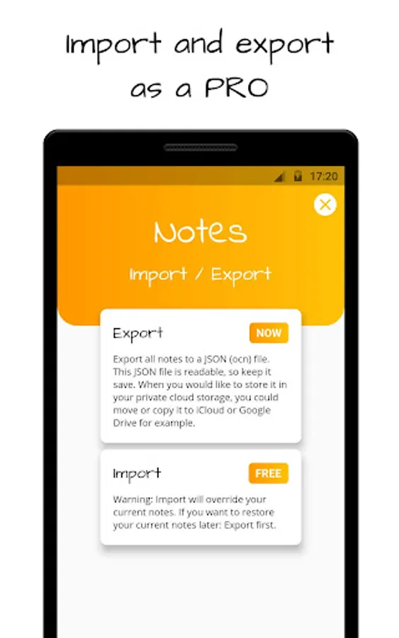 Warning: an import will override all your current notes. If you want to be able to restore your current notes later, you have to export them first.