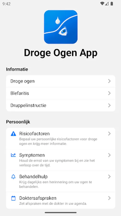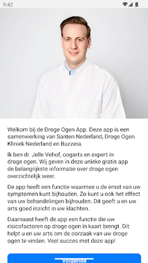 This app is a collaboration of Santen Netherlands, Dry Eyes Clinic Netherlands and Buzzera.