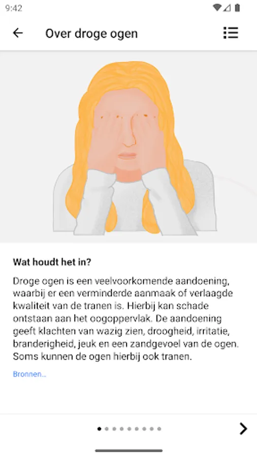In the app we clearly display the most important information about dry eyes. This way you can learn more about the causes and possible treatments for dry eyes.