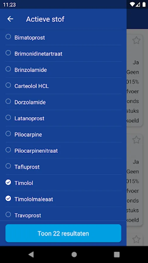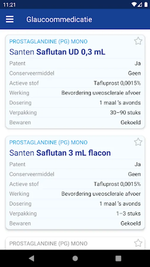 The Glaucoma medication app contains an overview of glaucoma medication available in the Netherlands. Through filters and a search function you can quickly find medication with certain properties. You can also keep a list of favorites to find them easily.