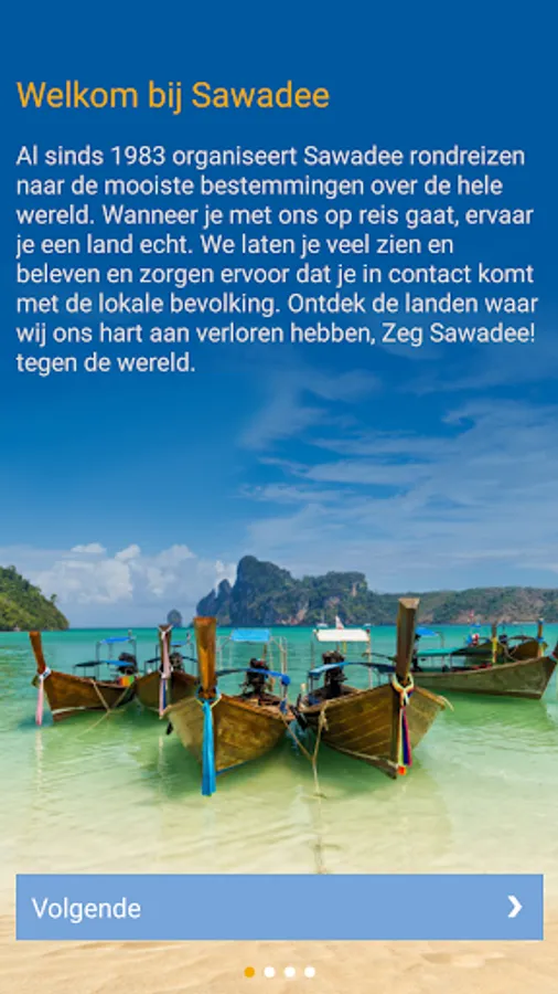 Are you joining Sawadee on a roundtrip to your dreamdestination? To offer you the extra service, fun and information before and during your trip, we developped the Sawadee app. Meet your travelcompanions, experience and share your trip and get to know your tourguide.