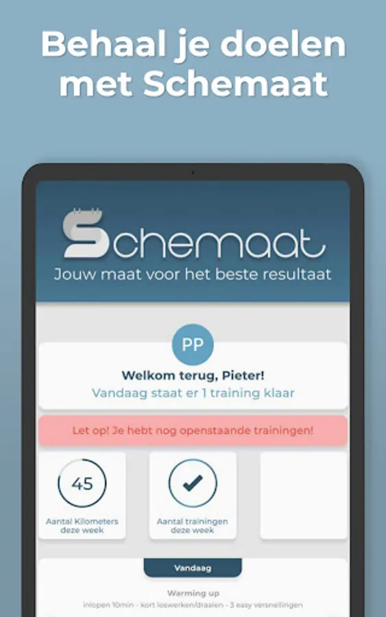 With Schedule you can easily keep track of your running or personal training schedules. The app makes it possible to enter your workouts, view them and even track your progress. Whether you're new to running or are already an experienced runner or personal trainer, Schemaat provides the tools you need to reach your goals. Try it out today and easily and efficiently track your running or personal training schedules with Schedule.