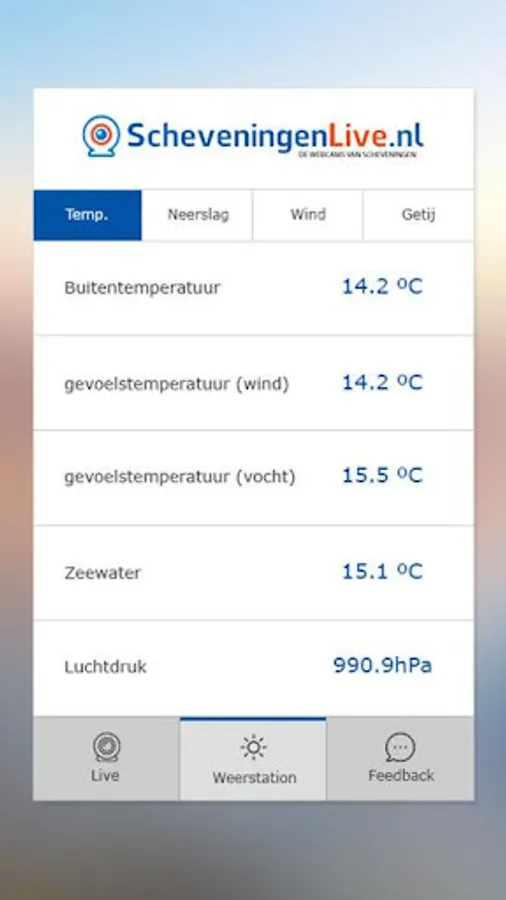 All webcams ScheveningenLive.nl always live in images and streaming video that can be found in the official app for android. In this app you can also find the latest data of the weather such as temperature, precipitation and wind.