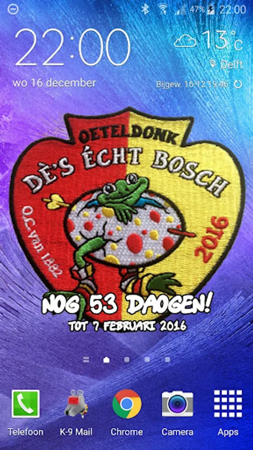 Widgets for a real Oeteldonker. With these first two you can see at a glance how long you have to wait for the party in Oeteldonk to burst again. Moreover, it is nice on your home screen.