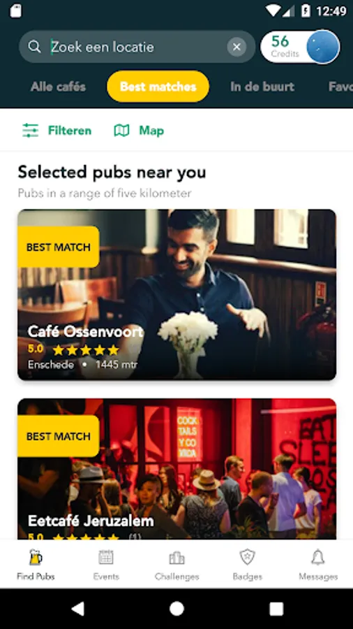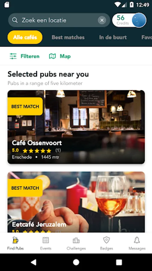 Earn badges and credits by checking in at as many pubs possible or by winning challenges.