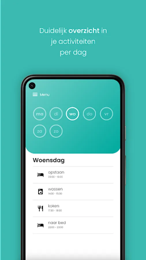 Daymate brings peace to your day. You can easily and quickly create an overview of your daily and weekly activities. No traditional to-do list or daily agenda, but a simple overview using clear icons. The app is for everyone who sometimes experiences a lack of structure or overview. With daymate you keep a clear daily schedule.