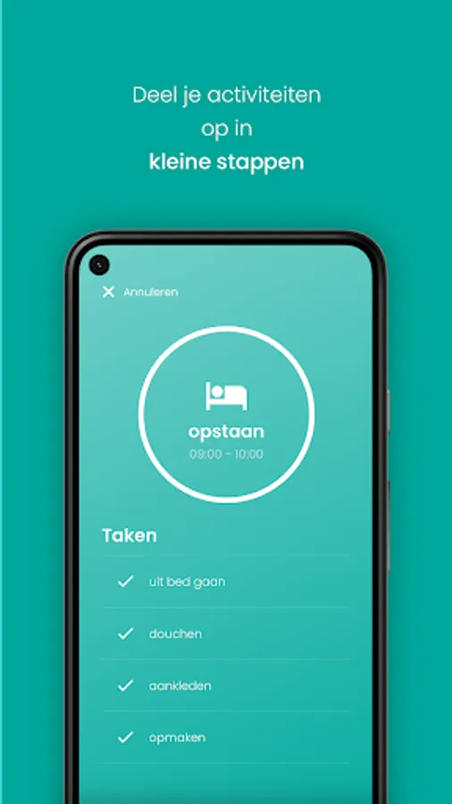 Daymate is clear, simple and low-stimulus. See immediately what your current activity is with a clear icon and receive a notification as soon as an activity starts. Thanks to the handy timer, you always know immediately what to do - accurate to the minute. You can also plan your rest times.