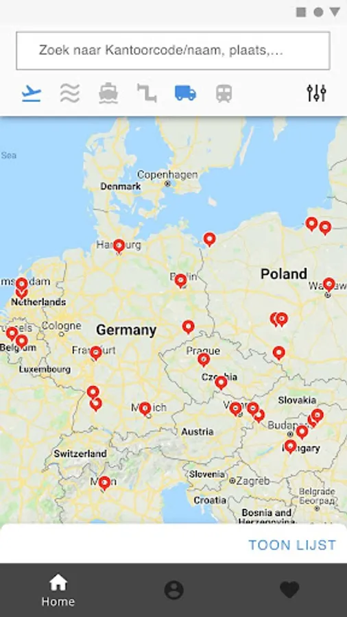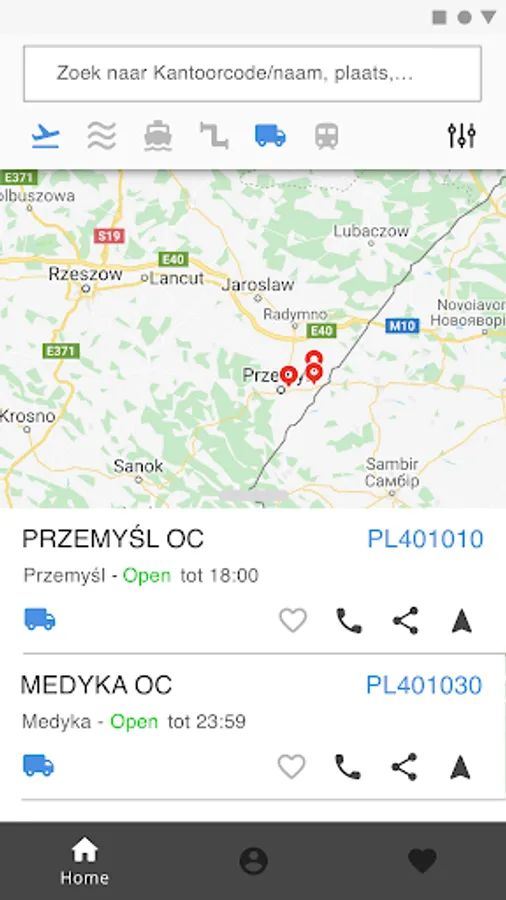 Besides custom offices of exit, CO&GO also shows all EU custom offices on a map, including their functions. By filtering on custom office and way of transport and by zooming out on the map, the relevant offices are shown. With one click on the correct office all relevant and needed details are shown.