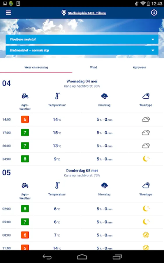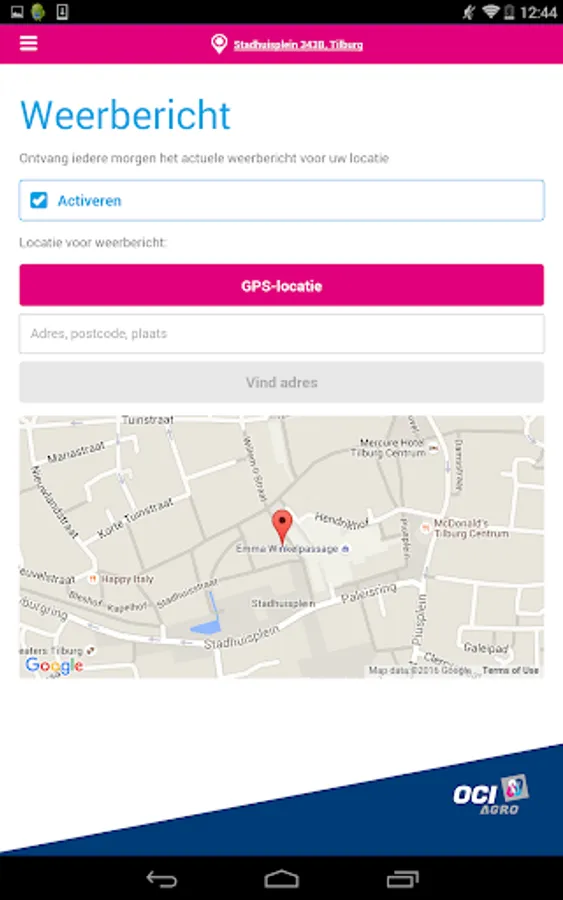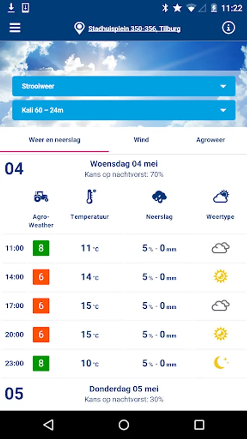 A modern farmer wants smart and efficiently. In doing so, he needs information to determine when he can best fertilizing, watering, spraying, spreading or welfare of their animals can optimize the country. This is possible with the extended OCI Agro Agro Weather App that has been developed for farmers. This app gives depending on your planned agricultural activity the optimum time to go to work.