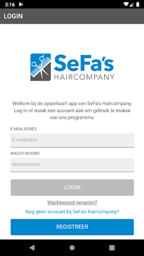 With the SeFa’s Haircompany savings card app you have an extra edge. Save for advantage and take advantage of special offers for our savings card holders. If you do not have a card yet, you can request one with this app by completing the registration. If you already have a savings card, and you want to link this card to this app, you do not have to register again, but then log in. When logging in, use the same e-mail address that you specified when you received the savings card with barcode in our store. This is the e-mail address where you receive mail from us from time to time. If you have not yet created a password or have forgotten it, click on [Forgot password]. By creating a password you can log in and receive the same card number in this app as on your physical savings card.