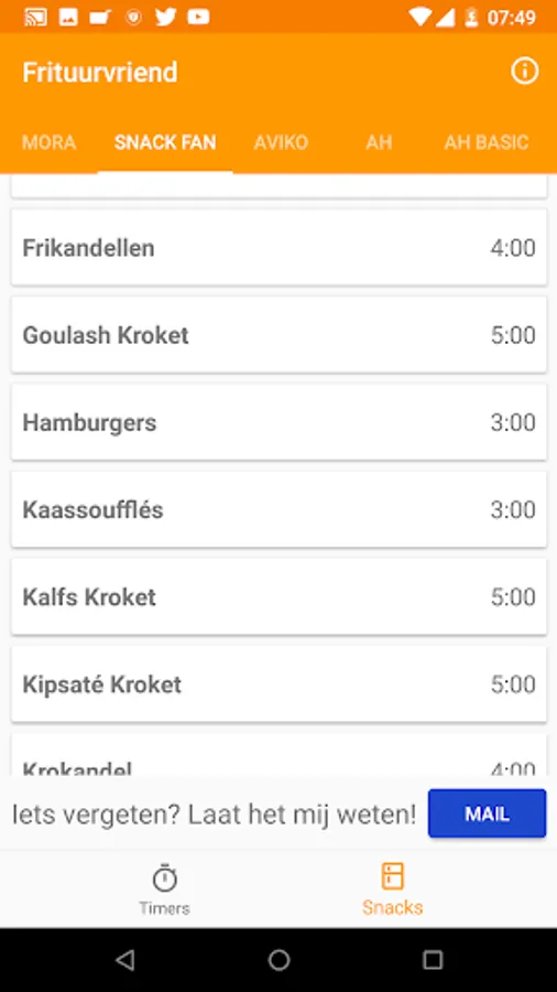 Or suppose you have some friends visiting. At a certain point you in the mood for something sweet; the fryer is on. You take the order and everyone wants something different, one a croquette, a frikandel another, and yet another wants a bamischijf. How do you keep track of when the snack from the fryer needs?