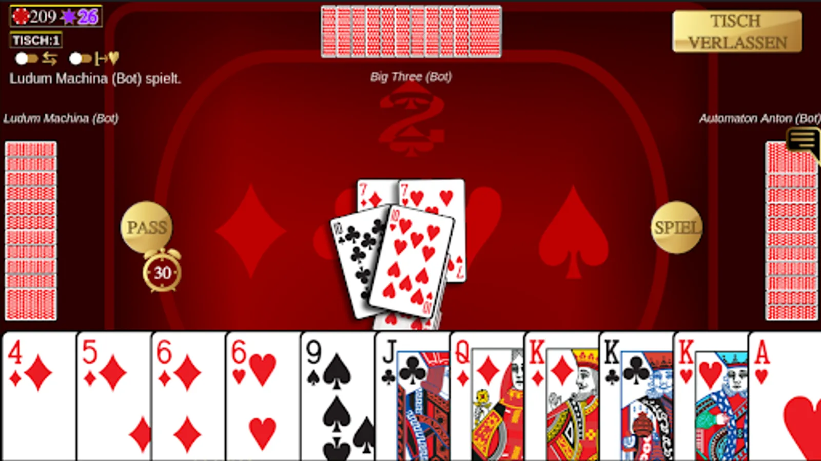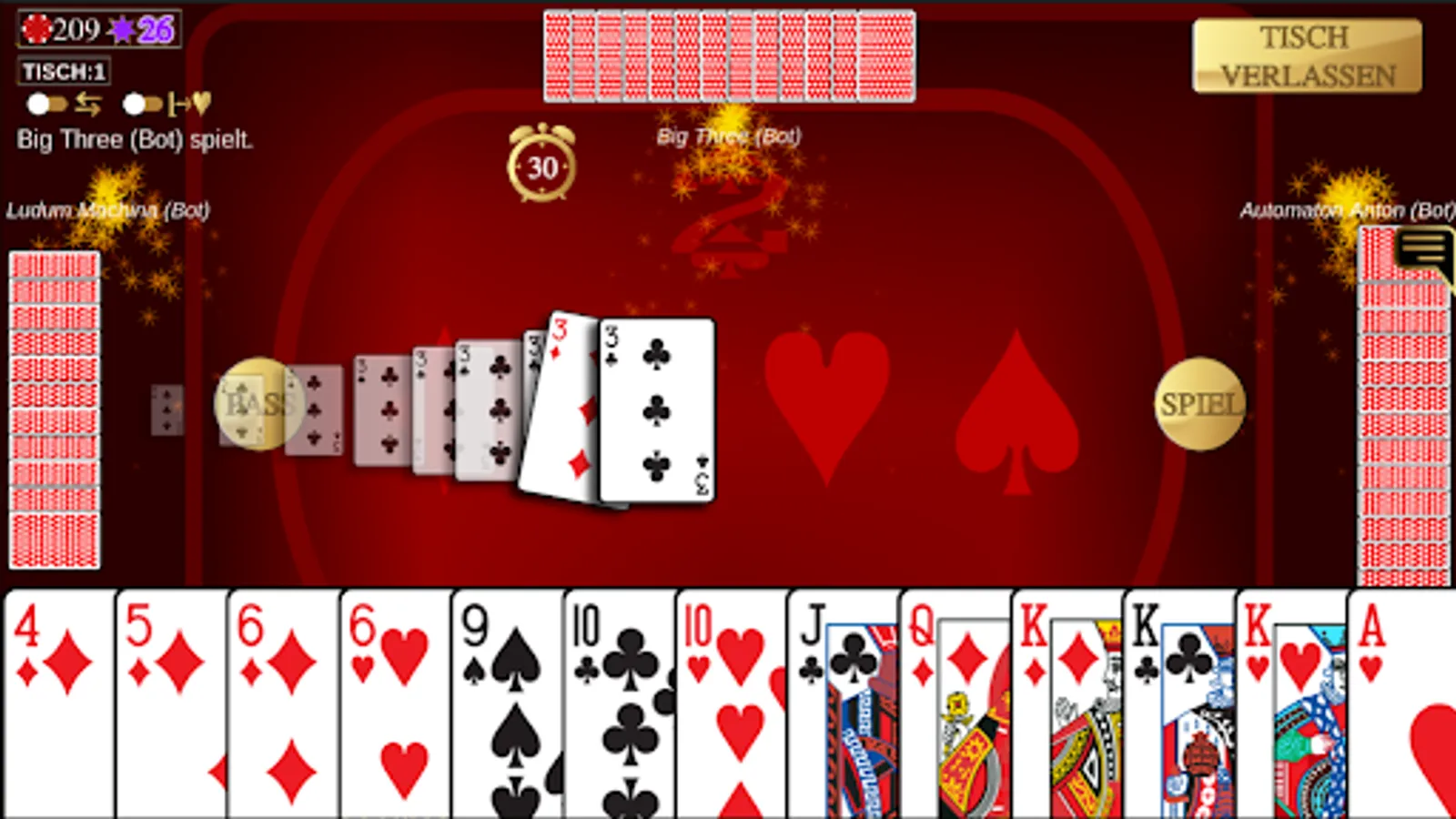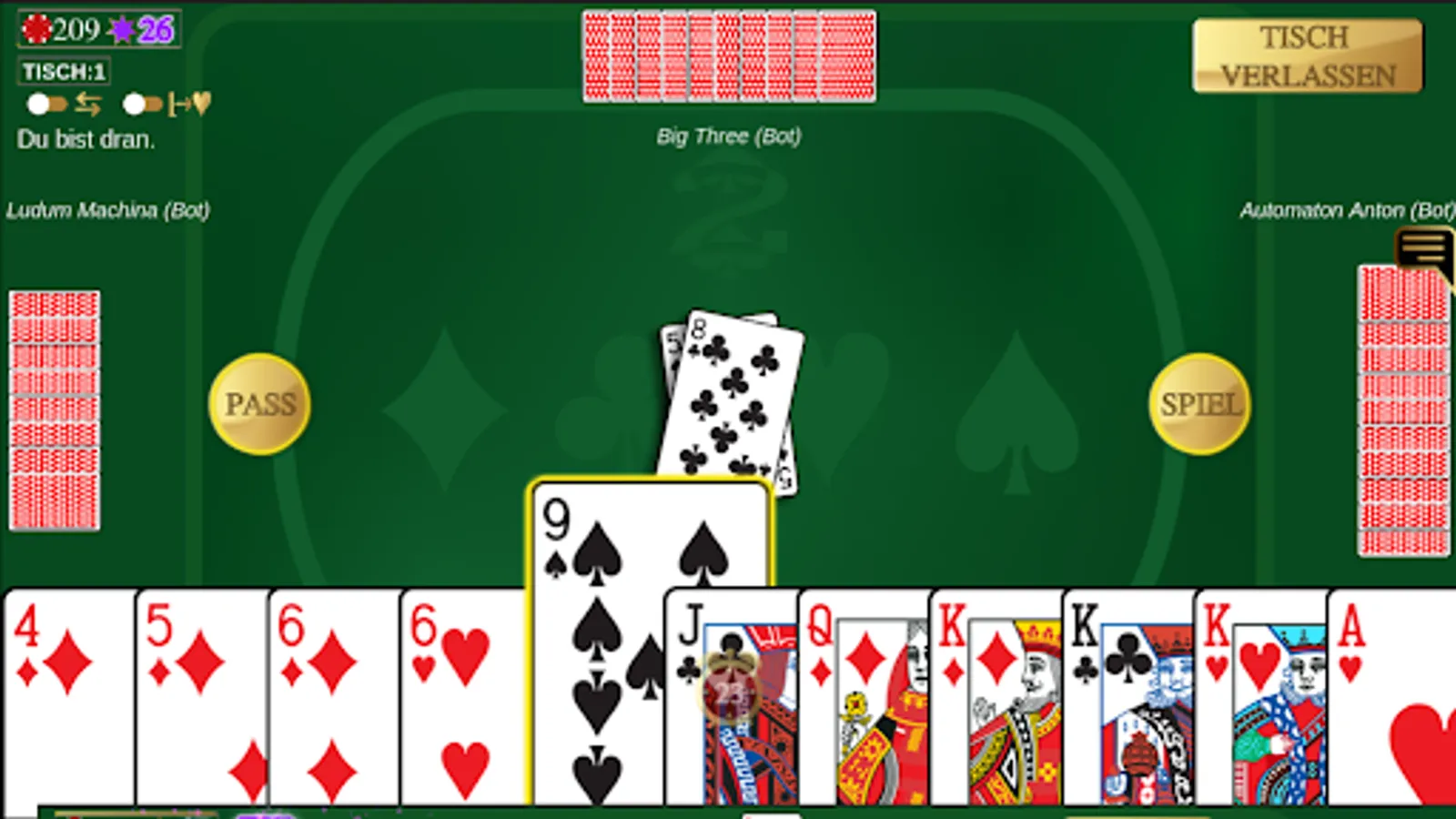 It is played with four players online, the entire deck being dealt out in with 13 cards per player. The objective of the game is to be the first to play of all of one's cards. If not enough players are available bots will automatically come and help out to occupy seat in the meantime. Play while wait!