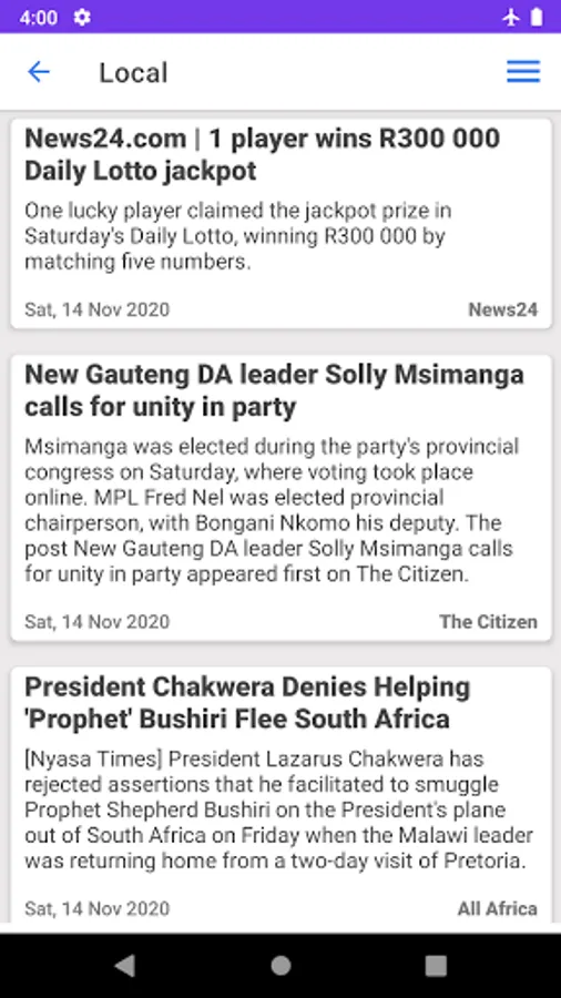 Enjoy reading South Africa news in just one intuitive and easy app.