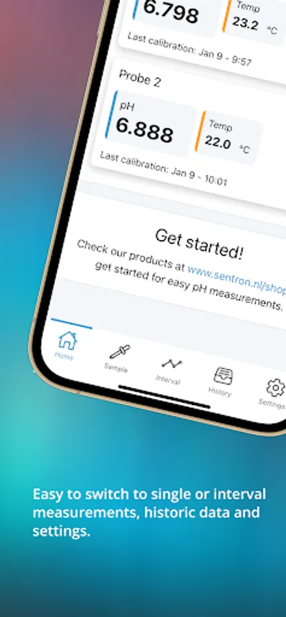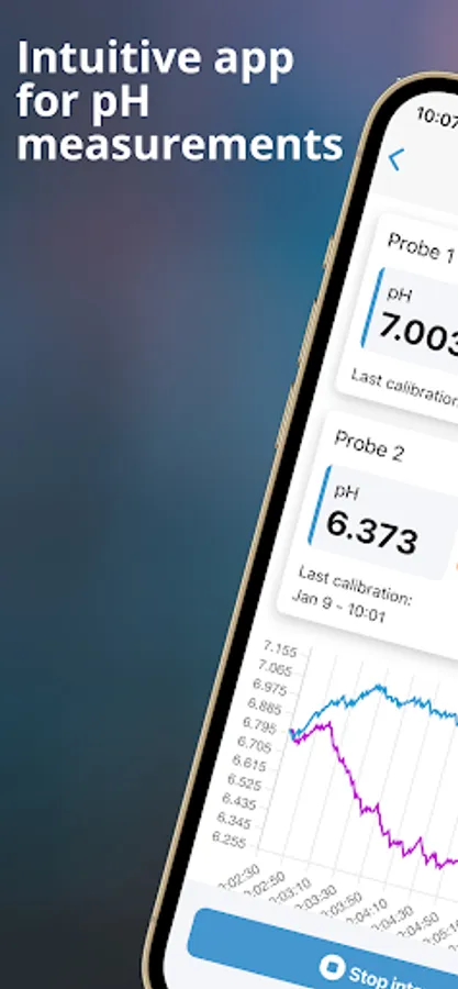 The app is intuitive and guides you through the complete process of setting configurations, calibrating, acquiring, storing and exporting all measurement data. Monitoring pH was never that easy!