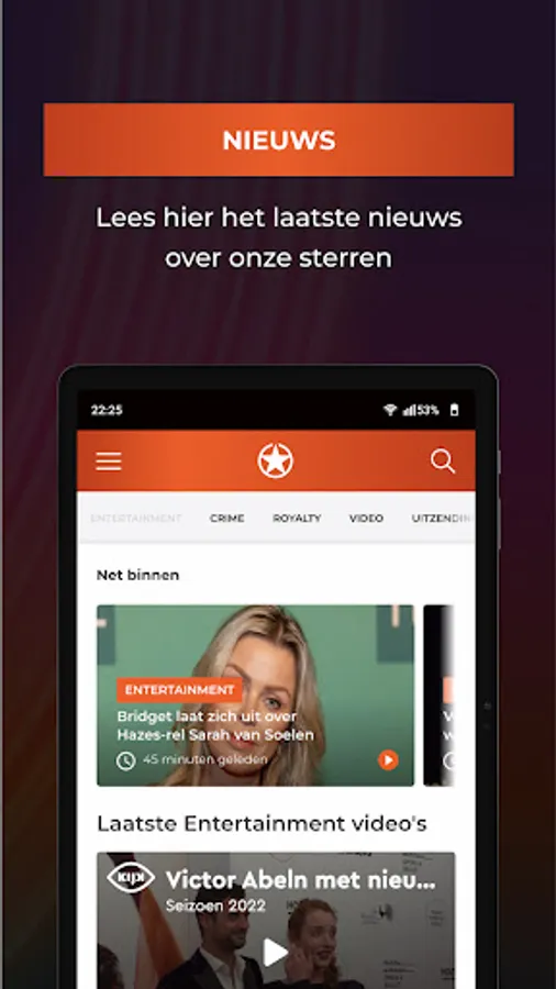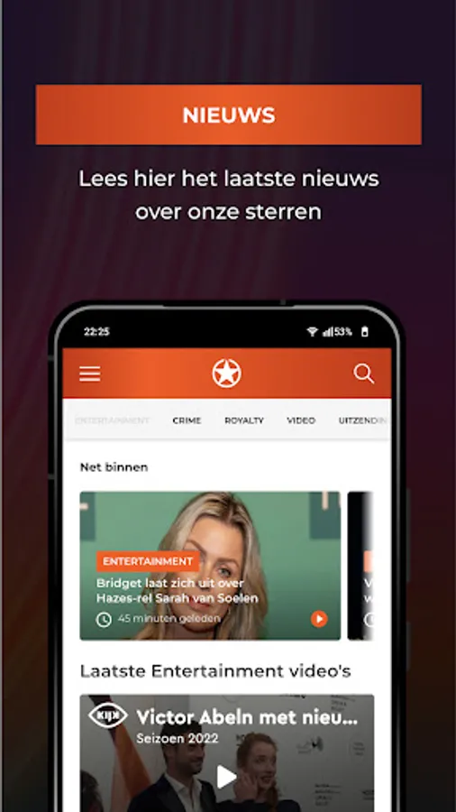With the Shownieuws app you are always aware of the latest news about showbiz, stars, entertainment, royalty, crime, films and television.