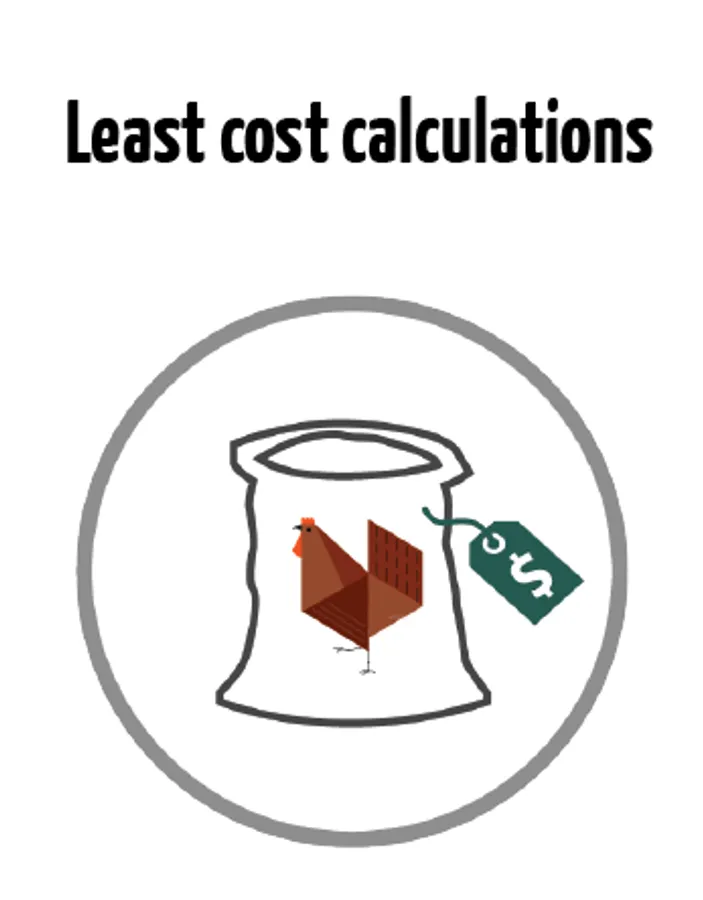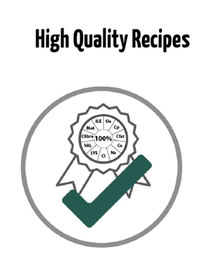 Due to the built-in smart algorithm developed by our team, the app will give you a 100% balanced feed recipe for the lowest possible price.