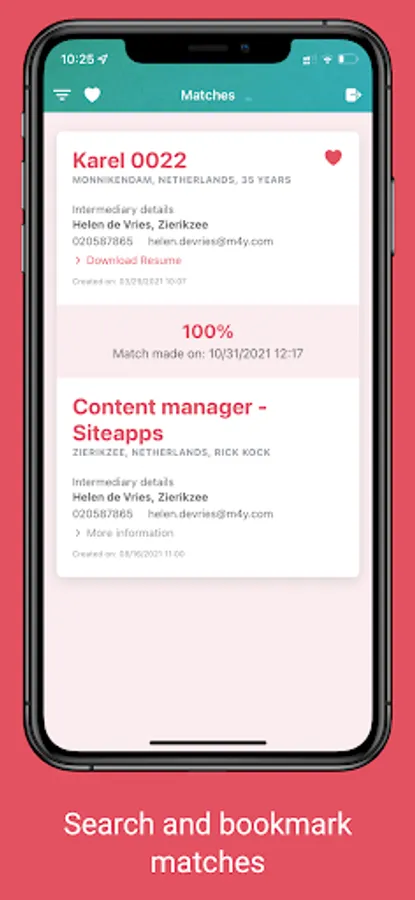 have a large distance from the labor market. Within this app an intermediary can get notified on new matches and mark them as bookmarks.