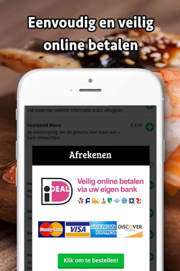 Via this app you can easily and quickly place your order. In addition, you will be kept informed of the latest news and the latest promotions, offers and discounts. You can also simply pay with iDEAL or credit card via the app!