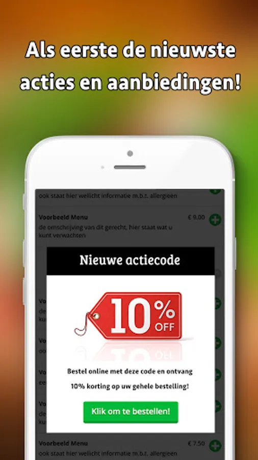 You can place your order quickly and easily via our app. In addition, you will be kept informed of the latest news and the latest promotions, offers and discounts. You can also simply pay with iDEAL or credit card via the app!