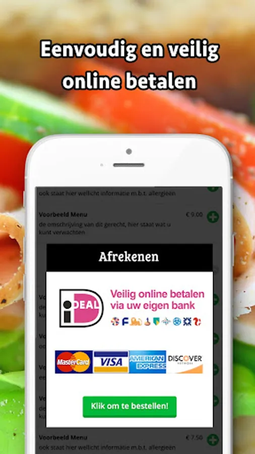 You can place your order quickly and easily via this app. In addition, you will stay informed of the latest news and the latest promotions, offers and discounts. You can also simply pay with iDEAL or credit card via the app!