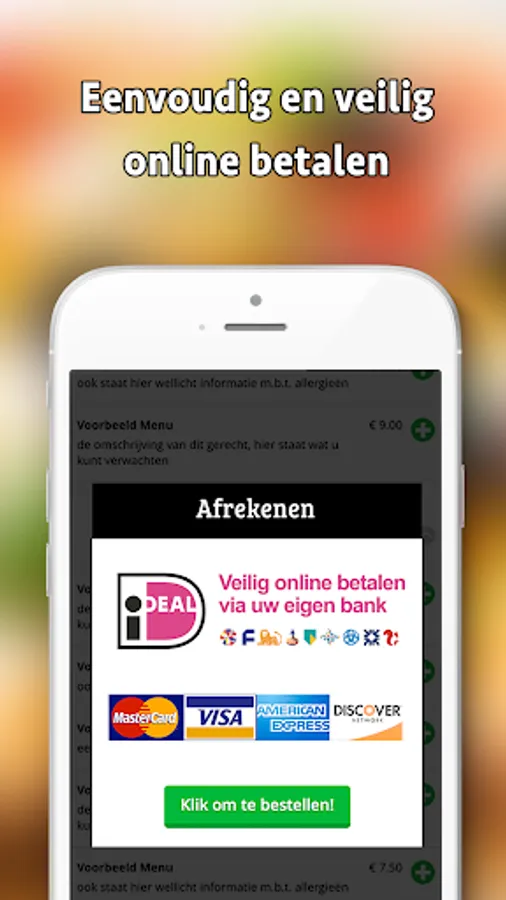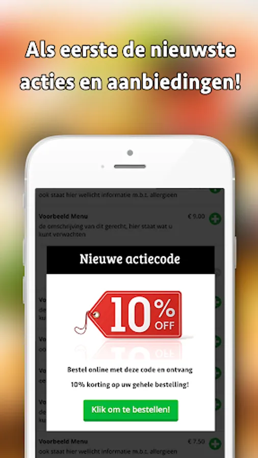 You can place your order quickly and easily via our app. In addition, you stay up to date with the latest news and the latest promotions, offers and discounts. You can also easily pay with iDEAL or credit card via the app!