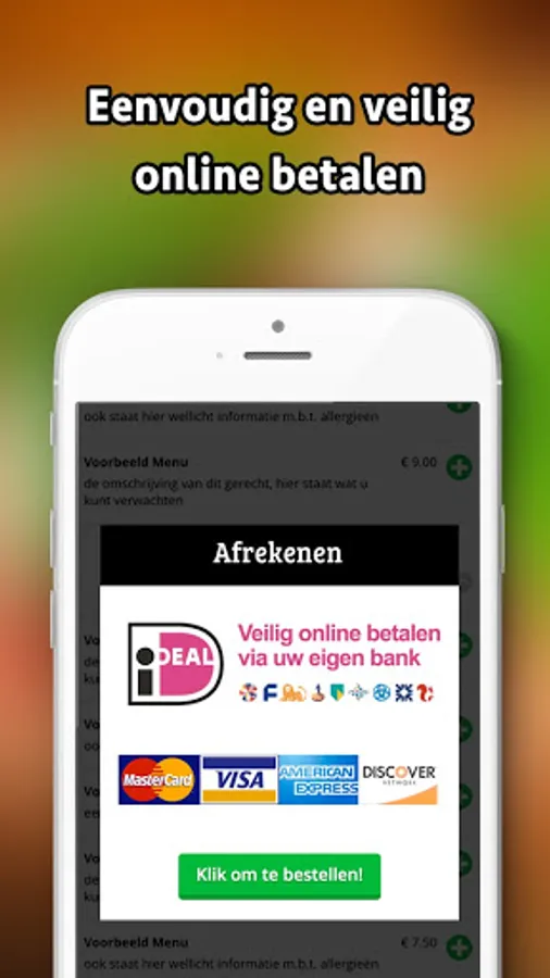 Via this app you can easily and quickly place your order. In addition, you will be kept informed of the latest news and the latest promotions, offers and discounts. You can also simply pay with iDEAL or credit card via the app!