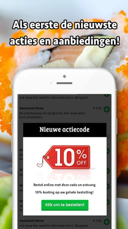 You can place your order quickly and easily via our app. In addition, you stay up to date with the latest news and the latest promotions, offers and discounts. You can also easily pay with iDEAL or credit card via the app!