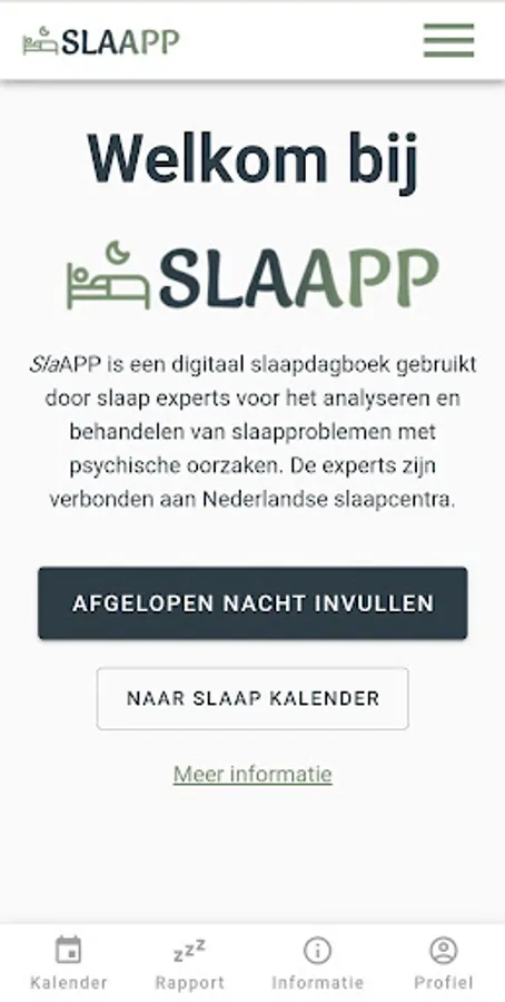 SlaAPP is the app for sleep and sleep problems. SlaAPP makes it possible to keep a sleep diary yourself, make sleep analysis and connect users with sleep experts in the field of sleep for professional advice. SlaAPP is used by, among others, hospitals and independent experts linked to a sleep center. The use of SlaAPP is free, linking costs with a sleep expert. You can find this on https://slaapp.nl.
