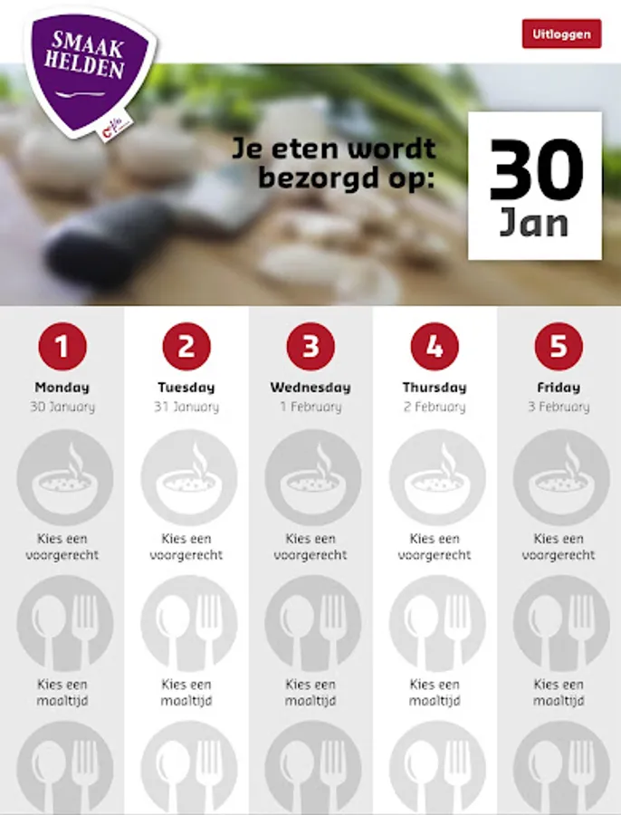 Taste Heroes app makes it possible to order very simple meals at Taste Heroes. Through a user-friendly interface can be ordered on a weekly level. Allergens are automatically filtered out by product and restrictions apply in numbers and amounts.