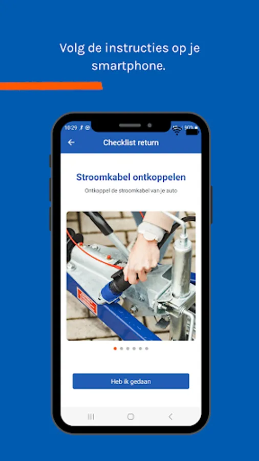 Pick up the trailer and unlock it with your smartphone. Check the trailer for damage and make sure you follow all the steps that the app shows you.