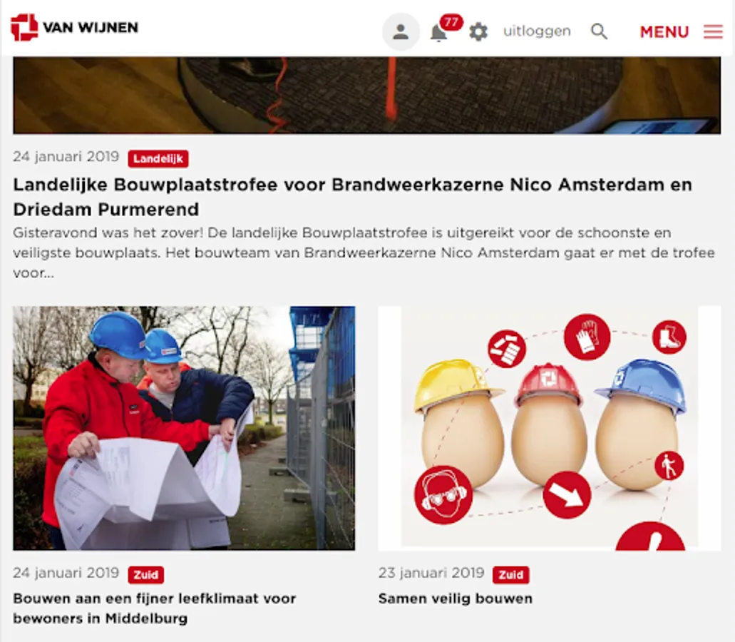 Through this app you can view the intranet and receive notifications of new news items. Set in your profile where you want to receive notifications.