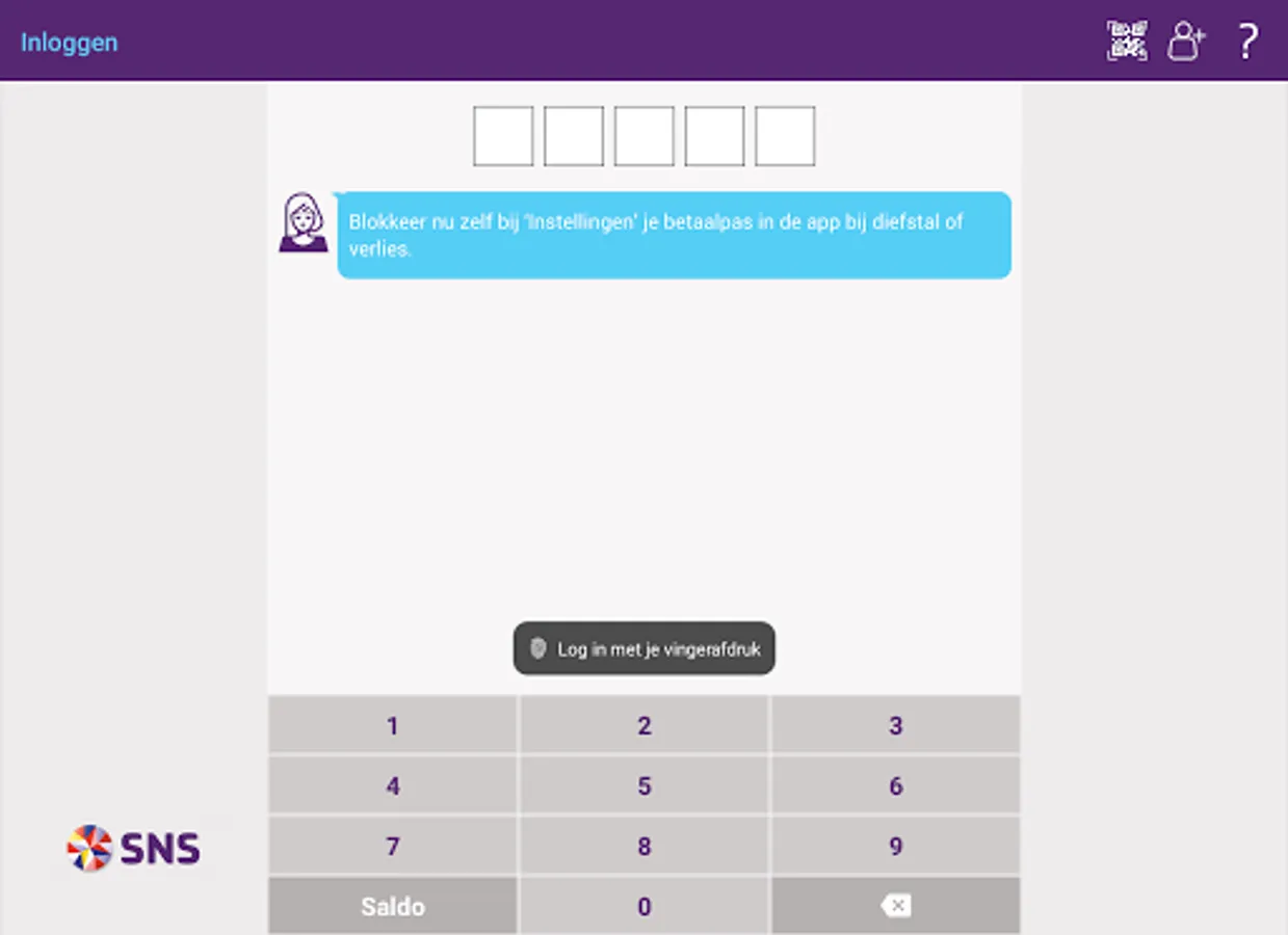 For business accounts with 1 digipas. Do you have a private account, insurance or mortgage? Then use the new SNS app.