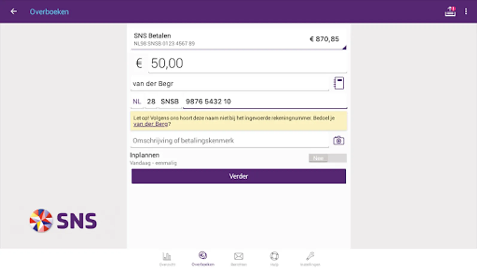Write in a review in the store what you think is good or what your wishes are for the app. We read and use your comment. Together we make SNS Mobile Banking better and better!