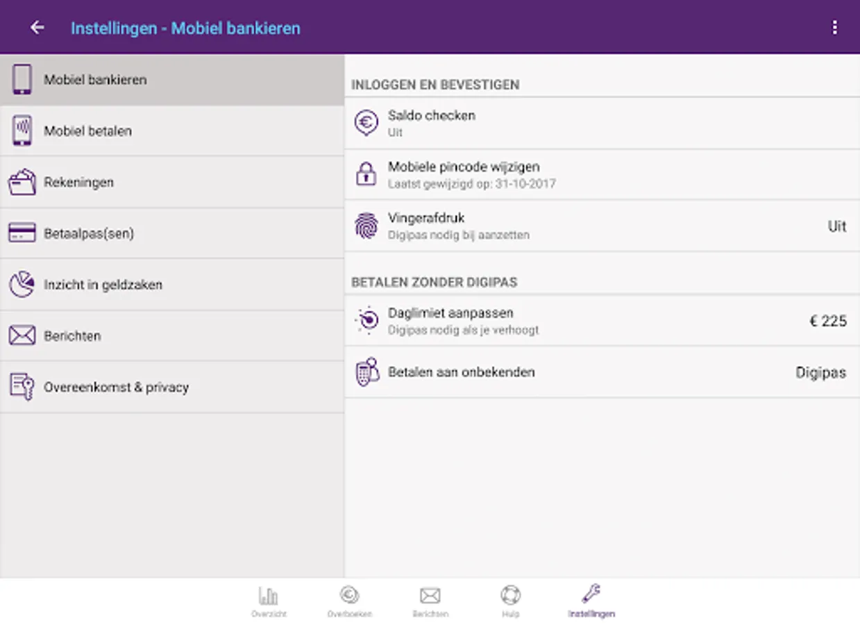 The app never stores financial data in your phone or tablet. For security reasons, it is also not possible to copy your app to another phone. Do you have a new phone? Then you download the app and log in again with security codes.