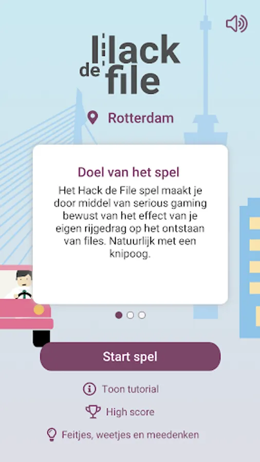 The Hack de File app makes you aware of the effect of your own driving behavior on the development of traffic jams by means of a serious game. Previous pilots have shown that many motorists are not aware of the effect of their behavior on traffic jams. With this serious game, which you obviously need to see with a big wink, we want to stimulate the dialogue with the key question: what can you as a motorist do to improve the flow? If you would like to discuss this further, please contact us at info@verkeersonderneming.nl