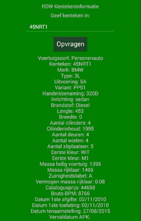 Simple no-frills application on the basis of a Dutch registration, to request registration information.