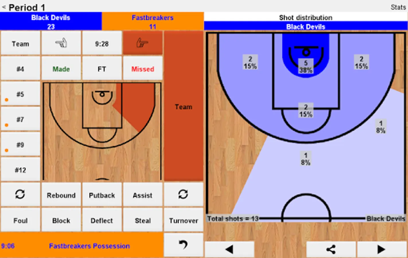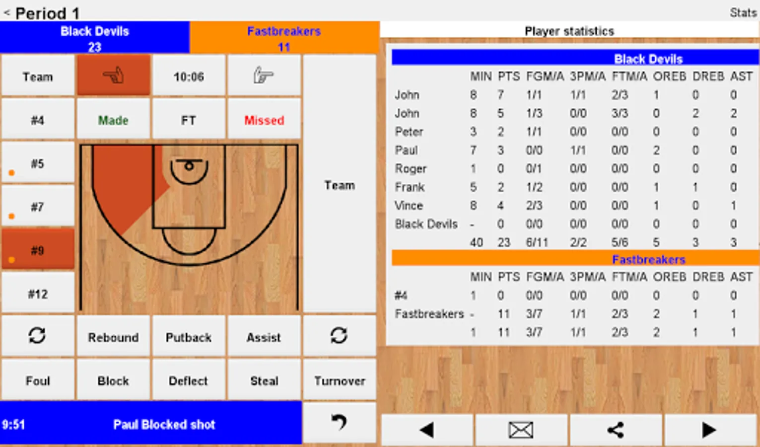 Easy Basketball Stats is intended for in-game analysis by coaches and scouts, but also for family/friends who simply want to track and share how their favorite team is doing. It is designed for ease of use, allowing also novice users to track and publish professional statistics.