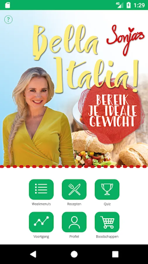 "Losing weight has never been so easy This new app includes all weekly menus, recipes and tips from the new book by Sonja Bakker:." Sonja's Bella Italia "Embark on a journey through Italy Find out how you can enjoy the Italian cuisine. and can lose weight at the same time. With this App you see not only your weekly shopping, but also keep your BMI and weight for easy access.
