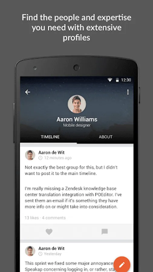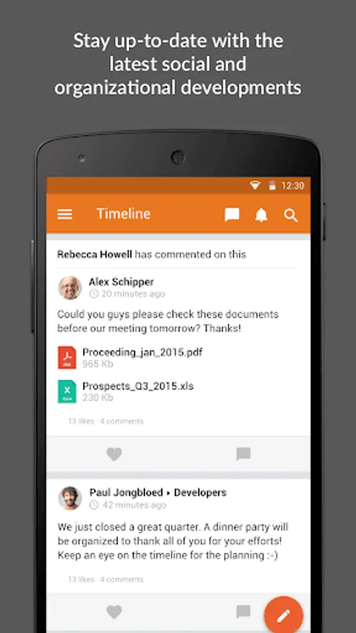Share new knowledge, ideas and internal achievements quickly and easily with the rest of your team, department or organization. Enrich messages with pictures, videos and emoticons. Simply keep track of new posts from your colleagues, organization and partners.