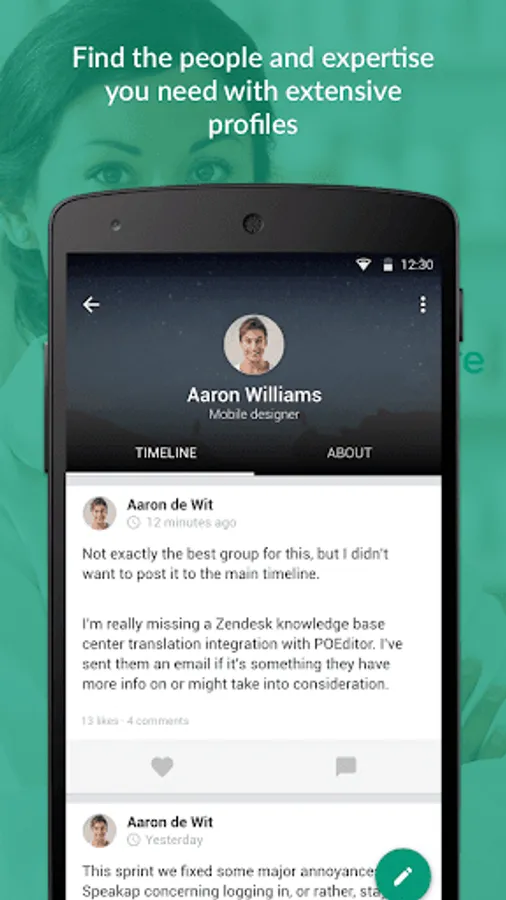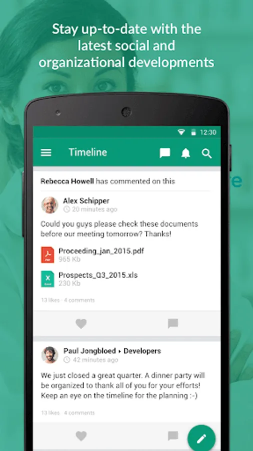 Share new knowledge, ideas and internal achievements quickly and easily with the rest of your team, department or organization. Enrich messages with pictures, videos and emoticons. Simply keep track of new posts from your colleagues, organization and partners.