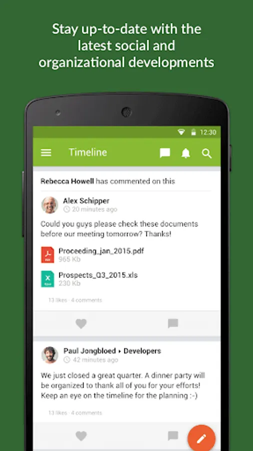Share new knowledge, ideas and internal achievements quickly and easily with the rest of your team, department or organization. Enrich messages with pictures, videos and emoticons. Simply keep track of new posts from your colleagues, organization and partners.