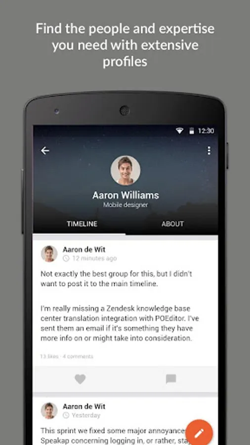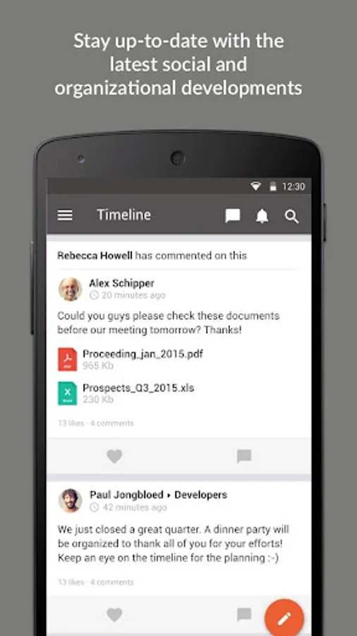 Quickly and easily share new knowledge, ideas and internal successes with the rest of your team, department or organization. You can enrich your messages with images, videos and emoticons. Easily follow messages from your colleagues and the organization. Push notifications ensure that you immediately notice new messages.