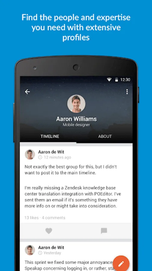 Speak EP is the platform for communication within and outside your organization. It consists of timelines, news feeds and chat features similar to your private social media. All to provide you with a pleasant and familiar way of communicating with colleagues and partners.